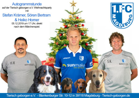 Morgen findet anlässlich unserer Tierisch geborgenen Weihnachtsparty eine Autogrammstunde mit dem 1. FC Magdeburg statt.
